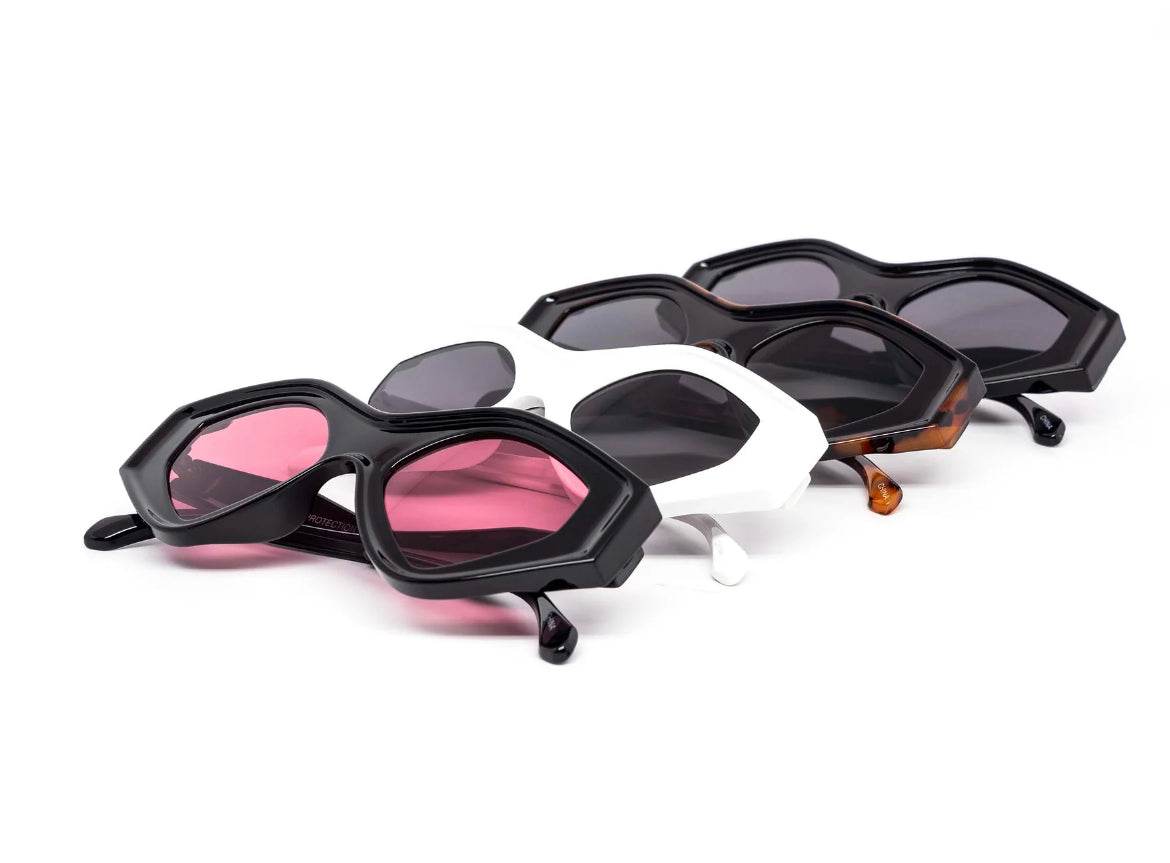 Unleash your eccentric side with Angular Shades! These cool and unique shades elevate your style and set you apart from the crowd. Step out of the ordinary and into the extraordinary with these must-have shades. (Possible additional information: With their angular design, these shades offer a new perspective on eyewear and add an edge to any outfit.)