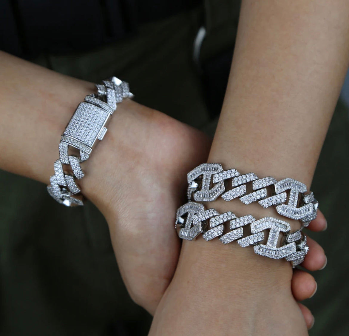 Rock the ultimate bling with the Large Pave Clasp Bracelet! The bold, angular links are adorned with tons of clear crystals for maximum shine. Perfect for anyone, this unisex bracelet is made from high shine stainless steel and 14k gold plating. Upgrade your style game now!